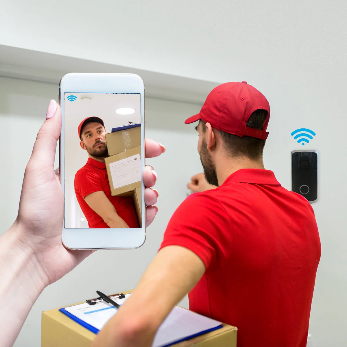 Vår WiFi-dörrklocka är enkel och går snabbt att installera, då den inte kräver strömkablar eller andra sladdar samt då du kan hitta appen snabbt genom att skanna QR-koden i snabbguiden (engelska). Efter att du har installerat appen ansluter dörrklockan till hemmets internetuppkoppling och du kan ställa in din kamera med några få klick samt komma åt bild och ljud när som helst och var som helst.