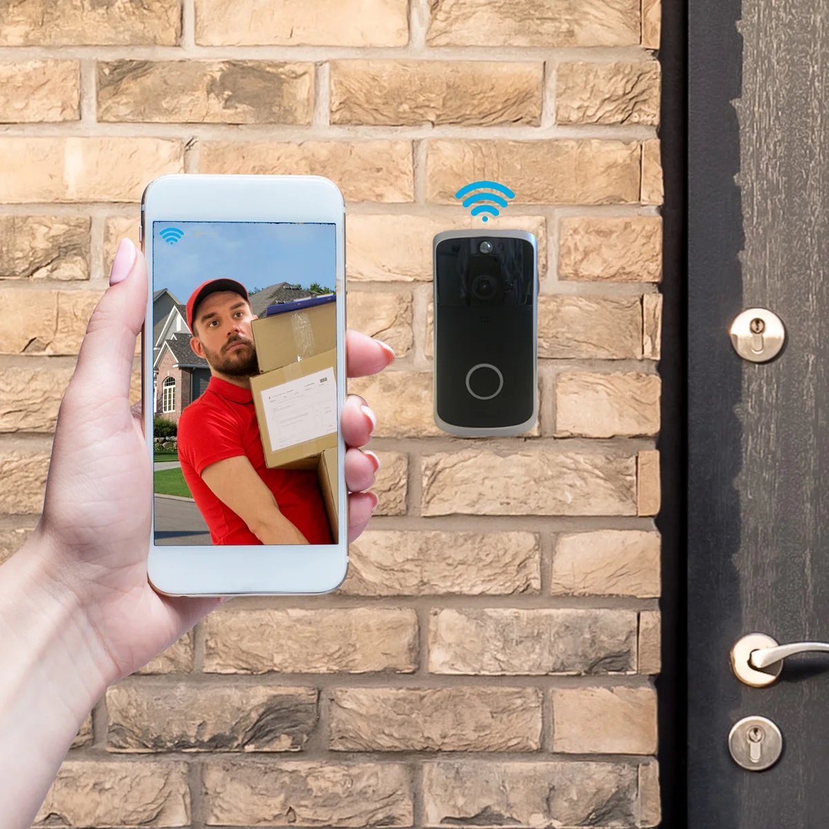 Så fort dina besökare trycker på dörrklockan (1 sek. svarstid) eller tack vare den smarta rörelsesensorn som känner av om någon står framför din dörr får du ett pushmeddelande på din smartphone, oavsett var du befinner dig så länge din smartphone har en internetanslutning.