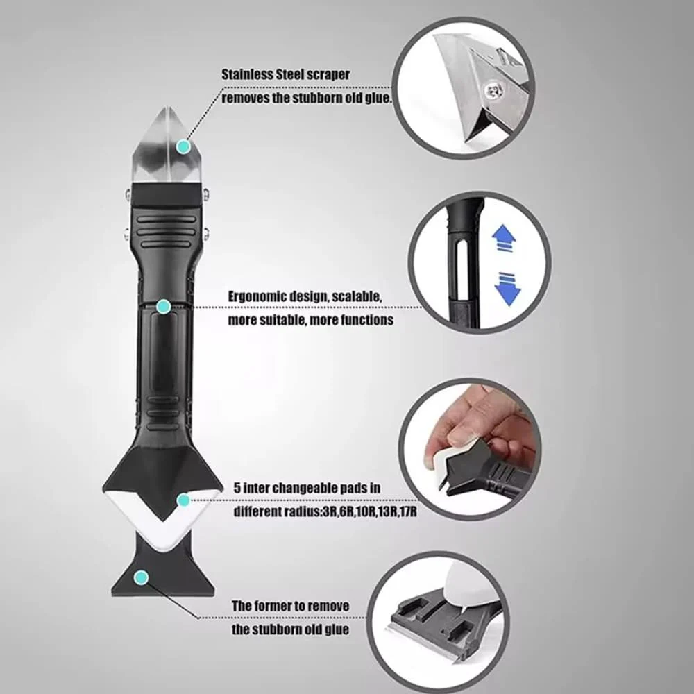 - Multifunktionell: Kombinerar fogskrapa, spatel och rengöringsverktyg.