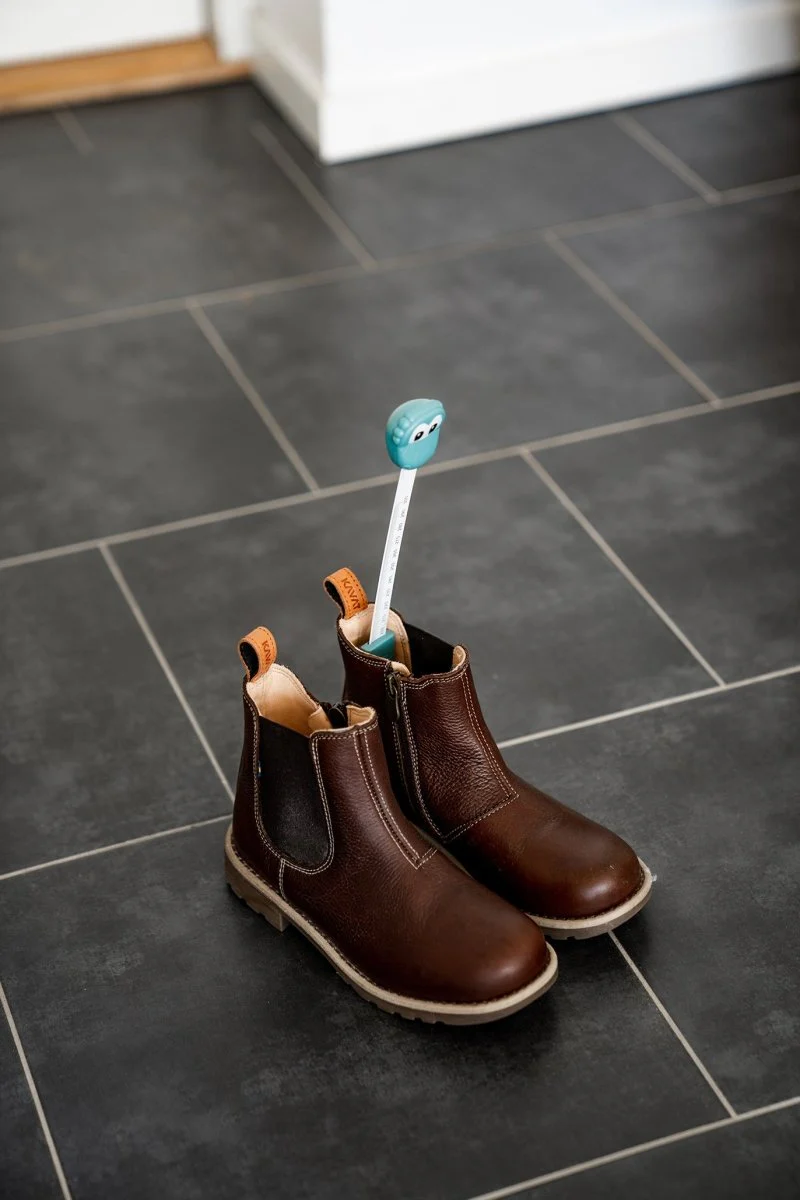 Kiddy är en mätsticka som gör det enkelt att hitta rätt skostorlek till barnfötter. Mäter enkelt och smidigt barns fotlängd och även innermåttet på barnskor. Ett praktiskt och uppskattat verktyg att ha hemma.