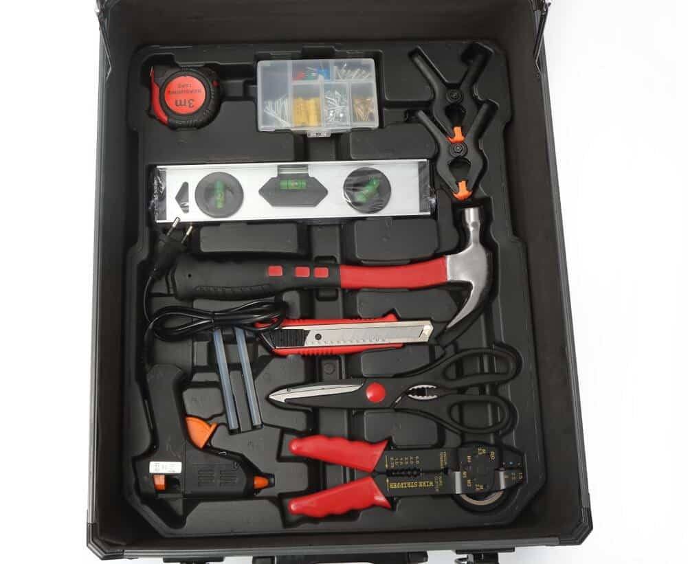 - Här finns det mesta du kan behöva; mejslar, tänger, skiftnyckel, limpistol, lod, hammare och mycket, mycket mer
